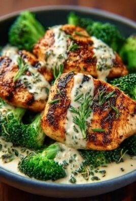 Grilled Chicken & Broccoli Bowls with Creamy Garlic Sauce